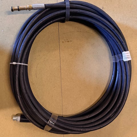 Højtryksslange til højtryksrensere. Denne slange kan tåle et tryk på op til 280 bar. Længde: 50 meter Med 3/8" gevind Max tryk: 280 bar Temperatur: max. 60 °C