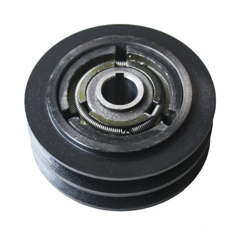 Returvare - har kun være ude af kassen og tilbage igen - Fuld returret/reklamationsret listepris: 1.500 kr. Vario kobling til mindre benzinmotorer med 25,4 mm (1") aksel. Kan bruges til max 11 hk motorer. Se også billedet hvor den er monteres på en 6,5 hk Lifan motor (ikke inkl.) Specifikationer: Hastighed: 2350 o/min (+/- 150) Til max 11 hk motor Moment: max 19 Nm Gear udveksling: 3,2 til 0,8 Et sæt består af: 1 x kilerem 1 x Plastic cover 2 x remskiver 1 x Aluminium monteringsbeslag 1x 10-tands tandhjul til #40/41 kæde 1 x Div. monteringsudstyr Klik på download for monteringsvejledning Nr. 3-4-vario På fanen video har vi 2 små film: 1) viser hvordan koblingen virker 2) viser hvordan man justerer koblingen til kørsel på forskellige typer underlag. Bemærk at kileremmen er asymmetrisk: den ene side/kant er lige mens den anden er skrå med en vinkel på 19 grader. Derfor kan kileremme også vendes forkert, så vær ekstra opmærksom ved montering.