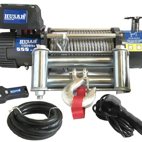 Returvare - har ikke været brugt, men indpakning/kasse er noget medtaget. Reklamationsret mm som nyt produkt. Listepris: 6.950 kr. 24 volts trækspil med en trækevne på 5.900 kg. Til montering på skovvogn mm. Leveres inklusiv indføringsruller og både kablet og trådløs fjernbetjening med op til 80 meter rækkevidde. Specifikationer: Trækevne: 5.900 kg Kun til 24 volt Med lås/bremse Wire: 26 m x Ø 9,5 mm Motor: 7,2 hk / 5,2 kw 3 gear/hastigheder Max: 188 ampere Gearing: 218:1 Hastighed: 2 - 7 m/min Trådløs fjernbetjening: rækkevidde op til 80 meter Str: 546 × 160 × 218 mm IP 67 godkendt Vægt: 28 kg Producent: Husar
