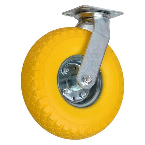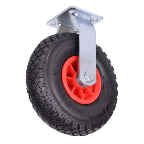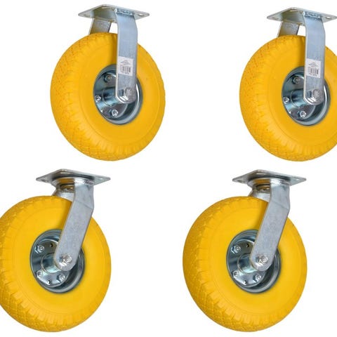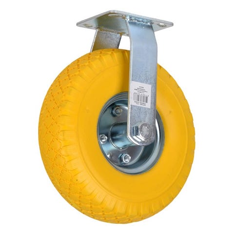 Har været monteret og har kørt ganske få meter - lidt brugsspor især på dækket. Sælges med alm. reklamationsret mm. Listepris: 245 kr. 10" transporthjul med fast fod og punkterfri hjul. Dækket er fyldt med PU skum. De punkterfrie hjul er smarte, hvis man ønsker at undgå punkteringer. Vær opmærksom på at punkterfrie hjul nemt får en “flad” side, hvis de står stille med belastning i lang tid ad gangen. Der er også derfor at disse transporthjul har en max belastning på "kun" 75 kg pr. hjul. Dæktype: 3.00-4 (260x85) Max belastning: 75 kg Kraftigt 10" hjul med fast fod Beslag str: 100 x 115 mm Totalhøjde: 300 mm