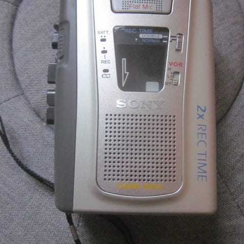 Panasonic Mini Cassette Recorder med stemmeaktiveret optagesystem (VASS). Enheden har funktioner som volumenjustering, mikrofonindgang, monitorudgang og genoptagelsesfunktion. Designet til bærbar lydoptagelse på mini kassettebånd.