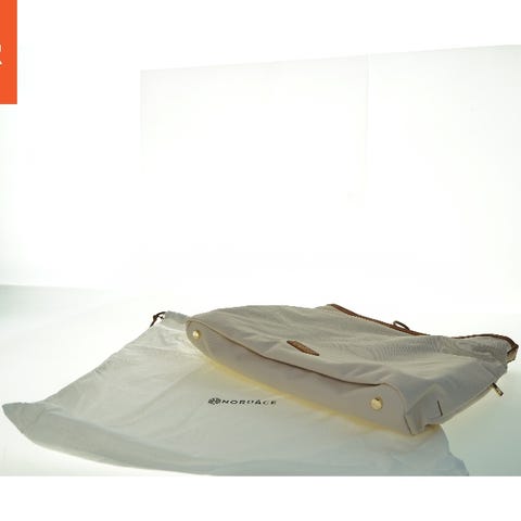 Lille skuldertaske fra Nordace med justerbar rem. Tasken har en enkelt udvendig lomme og en lynlåslukning øverst. Den er lavet i et cremefarvet materiale kombineret med lysebrune læderdetaljer. Størrelsen er 21x15 cm.