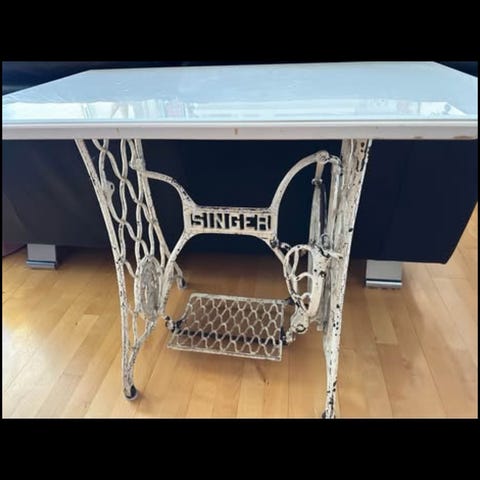 Singer sybord med lidt pastina med marmorplade