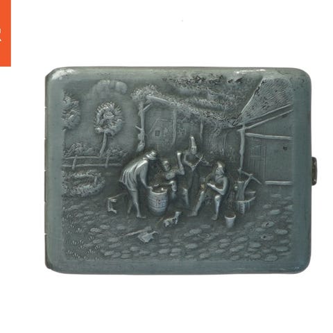 Metaldåse med landskabsmotiv (str. 19,5 cm)