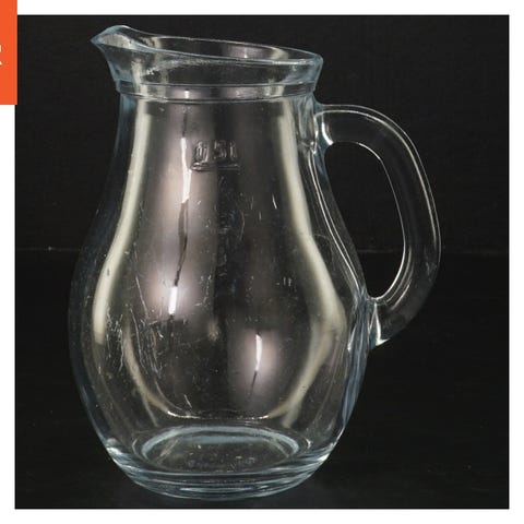 Dette er en gennemsigtig glaskande med en høj kant og en robust hank. Kanden har en skænkekant og er ideel til servering af drikkevarer. Den er 13 cm høj.