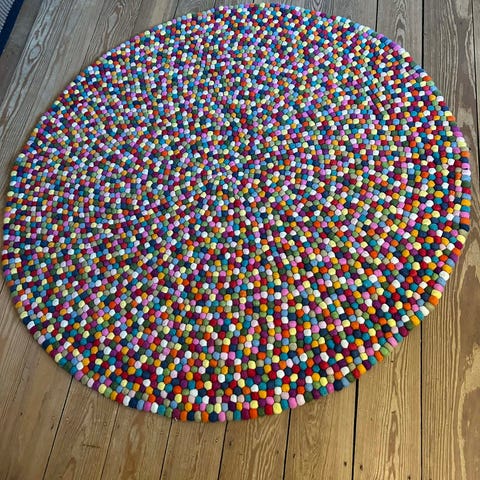Farverigt rundt kugletæppe (str. Ø 90 cm)