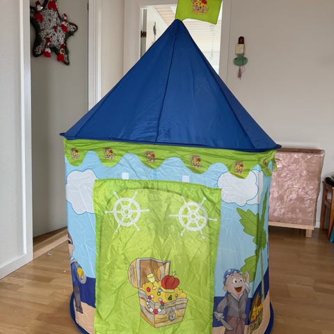Dette er et telt med underhavstema, der viser farverige motiver som koraller og havdyr. Det leveres med hvide stænger til opsætning. Teltet er fremstillet af letvægtsmateriale og måler 234 cm i størrelse.