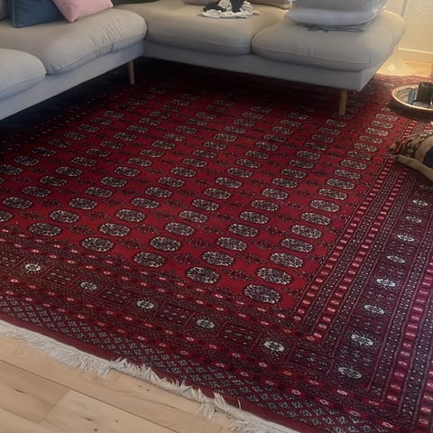 Næsten nyt ægte uldtæppe i beige sælges. Købt ved Rugvista 28-11-25 for 4500,-. Ingen pletter eller brugsspor. Kvittering haves. Kan sendes på købers regning, 150,-. Fast pris