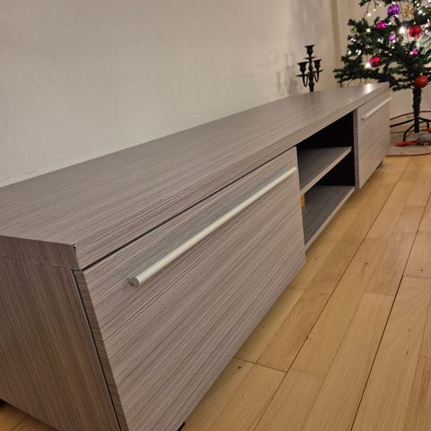 Stand: Selve møblet står flot, men beslagene indeni er lidt medtaget og trænger til et par nye skruer for at sidde helt perfekt.