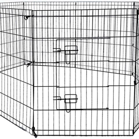 Metal hundegård / løbegård i pink med paneler på 61x71 cm. Egnet til indendørs brug som afgrænsning for hunde eller smådyr. Vi har brugt den til vores kaniner.