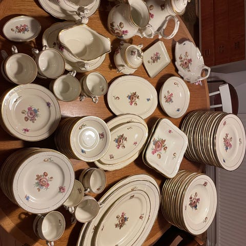 50 dele. 12 flade tallerkner 6 dybe tallerkner, sovseskål, fade, m m.