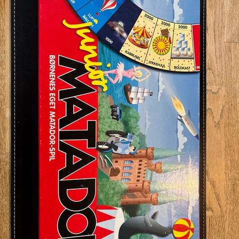 Matador Junior brætspil til børn. Spillet indeholder farverige illustrationer og er designet til at være børnevenligt.