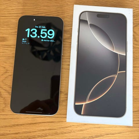Apple iPhone 16 Pro Max dessert smartphone med 512 GB lagerplads og titanium materiale.