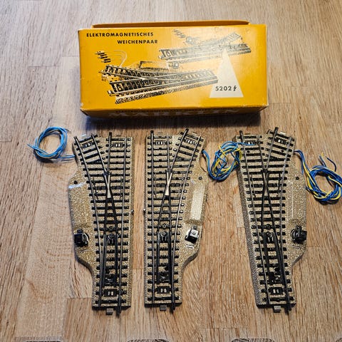 Märklin M-skinne el-skiftespor i pæn stand uden banerester sælges samlet. Alle lyser og skifter fint.