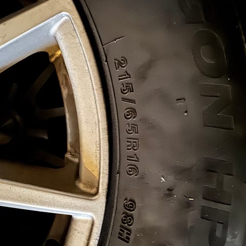 Størrelse 215/60 r 17 96 H på alufælge med bolte.