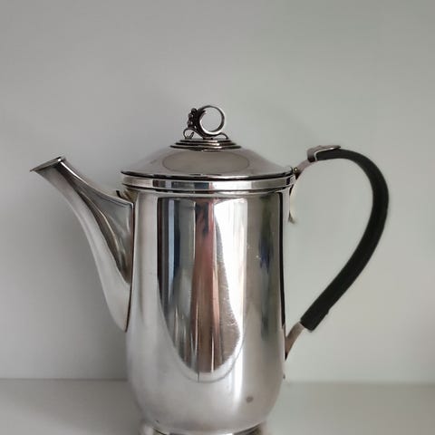 Sølvtøj, Tekande, metal Siam, Thailand, Tekande, Siam, Thailand, 19. årh. smukt detallieret arbejde, Indvendigt forgyldt, uden mærker, H 14,5 cm, L 21,5 cm, Bredde 12 cm, vægt 473,5 gram uden skader. Vurdering 5000,-,, kom med et bud
