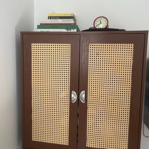 Toppen med den smalle hylde kan tages af, så skænken er nemmere at transportere.