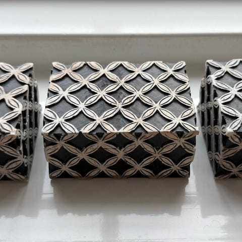 Flot sten-æske (muligvis marmor) med mønster.