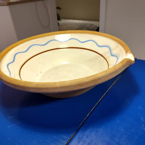 Dejfad, ælteskål, serveringsskål gammelt. 36 cm. I diameter 11,5 cm. høj.