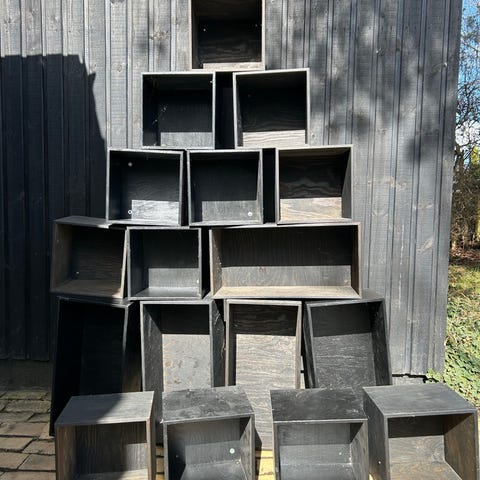 De tre klassiske bogkasser sælges samlet og er rigtig velegnede til fx at hænge på væggen eller til brug som sengeborde.