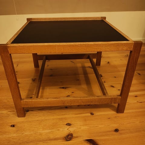 Børge Mogensen sofabord på hjul i egetræ. Fremstår meget flot, dig med hak i det ene ben.