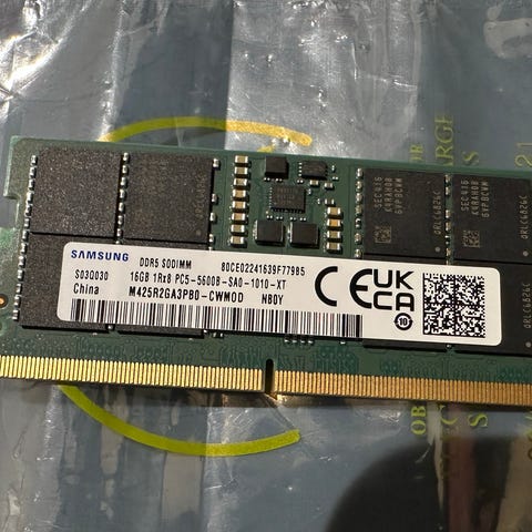 16GB (2x8GB) DDR5 fra en Lenovo bærbar med desktop adapter.