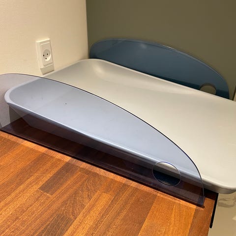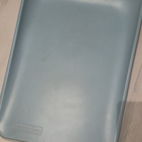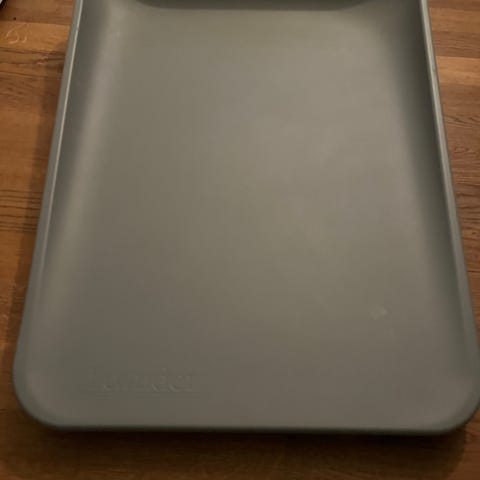 Pænt og velholdt puslepude i grå, nem at tørre af - lang ligge længde.