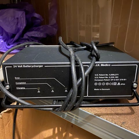 Har en fin brugt Elscooter oplader 24V 10Ah Medema
