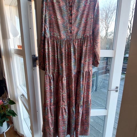 Slidser i siderne, 3/4 ærmelængde (på mig). Tror det er bomuld, dejlig som cardigan eller kjole.