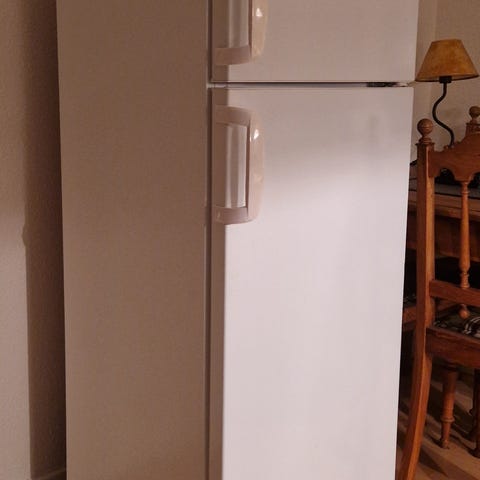 SKF 340A+55 køle-fryseskab med rustfri stålfinish. En kombineret køle- og fryseenhed med separate rum til opbevaring af friske og frosne fødevarer. Skabet har justerbare hylder og skuffer for fleksibel opbevaring. Der ses mindre kosmetiske mærker på overfladen.
