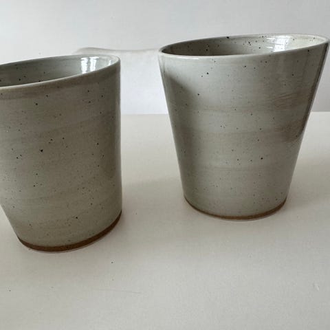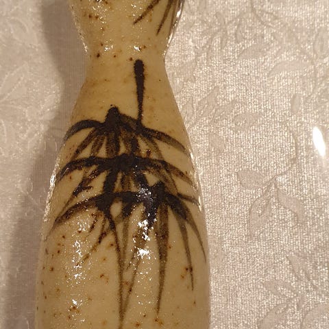 En fin, lille vase eller potte med en unik overflade, der ligner kork. Den er perfekt til kunstige blomster (som dem på billedet) eller måske en lille sukkulent.