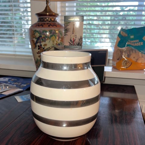 Kähler vase med sort og hvid stribet mønster