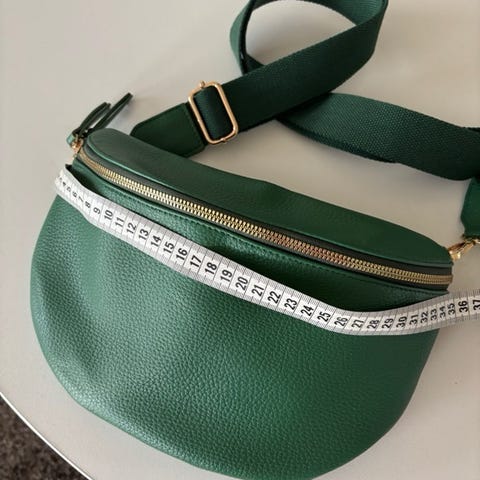 Unika bumbag crossover fed taske i grå lærred og bagside af brunt recycled læder. Lynlåsrum indvendig. Regulerbar skulderrem. Længde 60cm, højde 25cm. aldrig brugt.