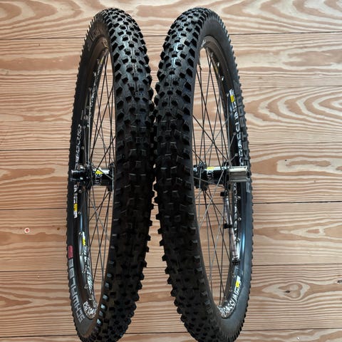 Med slanger, dæk, sorte QR og 160 mm skiver.