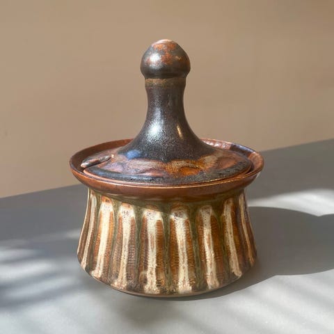 Signeret Design: Elsa Riise-Jørgensen eget værksted fra 1950 Allerød let udfnidret stempel) Dansk Keramik Krukke kande vase potte skål unika