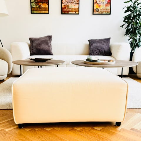 Helt ny Salamanca Puf fra BoConcept med polstring i stoffet Tuscany (hvid/lys grå). Er pakket ind og aldrig brugt. Ben er i sort metal.