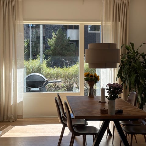 Bordet er slebet og olieret men det er den ekstra plade desværre ikke så dette skal gøres for at få samme farve. (Vi har kun brugt det med dug når vi har haft gæster)