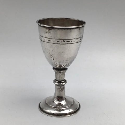 Silverco. Sølvbæger med fod af bakelit. Højde 8,2 cm. Produceret 1959.