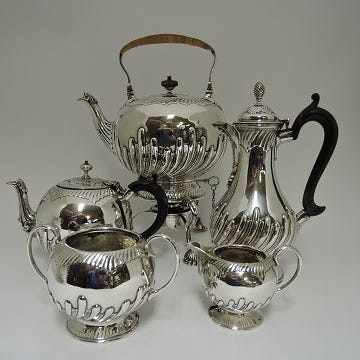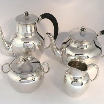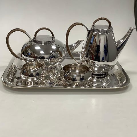 80.000 kr.5 dele Hingelberg Sterling Sølv The og Kaffesæt af Svend Weihrauch med Bakke ...København ØFøj til favoritter.