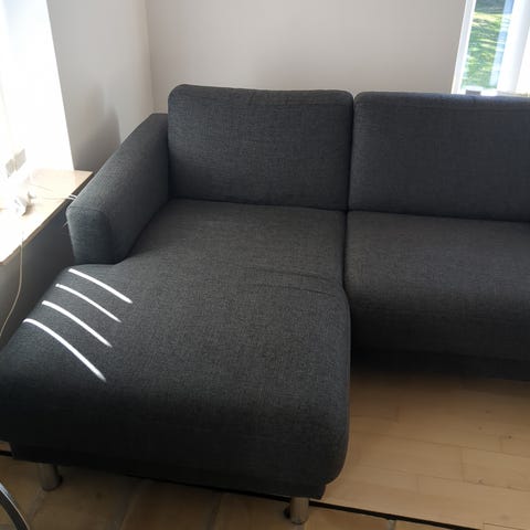 Dejlig Cleveland hjørnesofa i mørke grå velour stof med krom ben , ca3 år. fin stan . fra ikke rygerhjem.