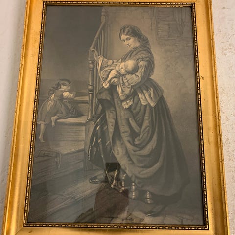 Billede, med "guld staferinger" i flot brun ramme 64x84