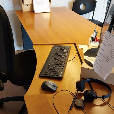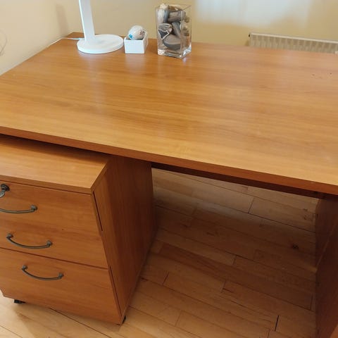 Solidt skrivebord med kabelskjuler: 400 kr.