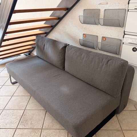 Grå sovesofa. Brugt i sommerhus til afhentning hurtigst muligt.