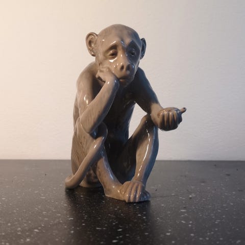 Bing og Grøndahl Siddende abe figur i porcelæn
