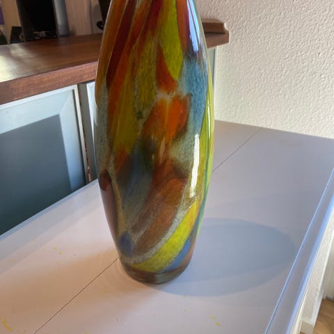Blå glasvase med mønster 27 cm højde