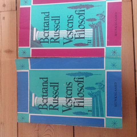 Bertrand Russell, Den Vestlige Verdens Filosofi bog. Indeholder filosofiske tekster og billeder i sort-hvid og farve.