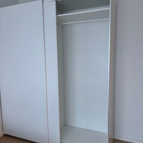 Skabet skal hentes inden i morgen klokken 09:00 (lørdag d. 10/01). Jeg sørger for at skabet er skilt ad, og jeg kan måske godt hjælpe med at bære noget af det ned til vejen, men vær to om at hente det, så det kan bæres forsvarligt ned (fra 1. etage).