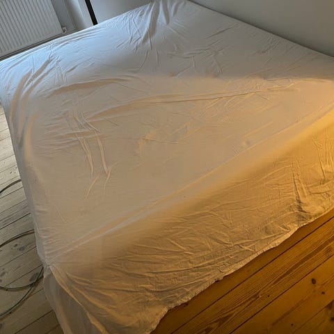 Skjuler hvis du opbevarer ting under sengen. Smukt hvidt og kun brugt en enkelt gang. Min seng var desværre for lav til lagenet, hvorfor det sælges.
