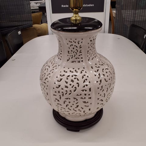 Praktisk afbryderknap på sort ledning, sort gummi bundmåtte forhindrer ridser på møbler. Oprindeligt indkøbt til at passe ind i en samling nyere HAK keramikvaser. Grå, Lysegrå, Cozy Grey