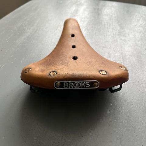 Brooks sadel i brun læder med metalbeslag. Sadelens design er klassisk og velegnet til cykler, hvor komfort og holdbarhed er ønsket. Materialet er læder, hvilket giver en robust og slidstærk overflade.